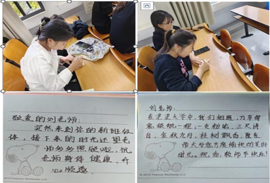 部分师范类专业同学们以“如何做合格人民教师”为主题展开讨论,鼓励同学们积极发表自己看法,并写下最想对老师说的一句话。部分班委代表同学向老师送上鲜花和节日祝福。